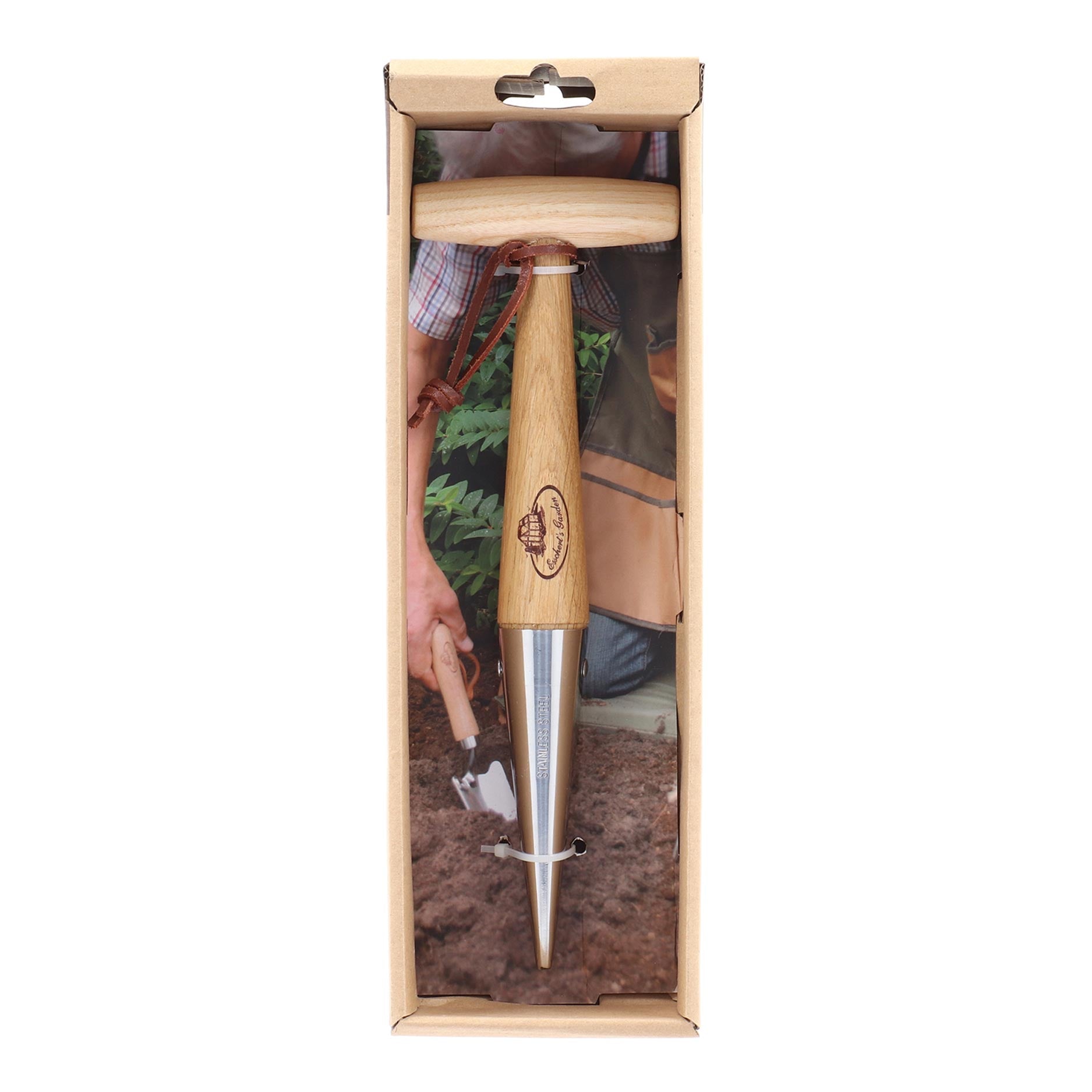 De RVS pootstok is traditioneel tuingereedschap voor iedereen met groene vingers en ideaal voor het nauwkeurig planten van bollen en zaailingen. Met dit gereedschap prik je eenvoudig nette plantgaten in de grond, zodat je snel en gecontroleerd kunt werken. De pootstok is gemaakt van roestvrij staal met essenhout en is afgewerkt met rundleder in de vorm van een leren ophanglus. De ergonomische T-handgreep zorgt voor een prettige grip en extra controle. Het geheel wordt geleverd in een open giftbox, wat het leuk maakt om cadeau te geven.
