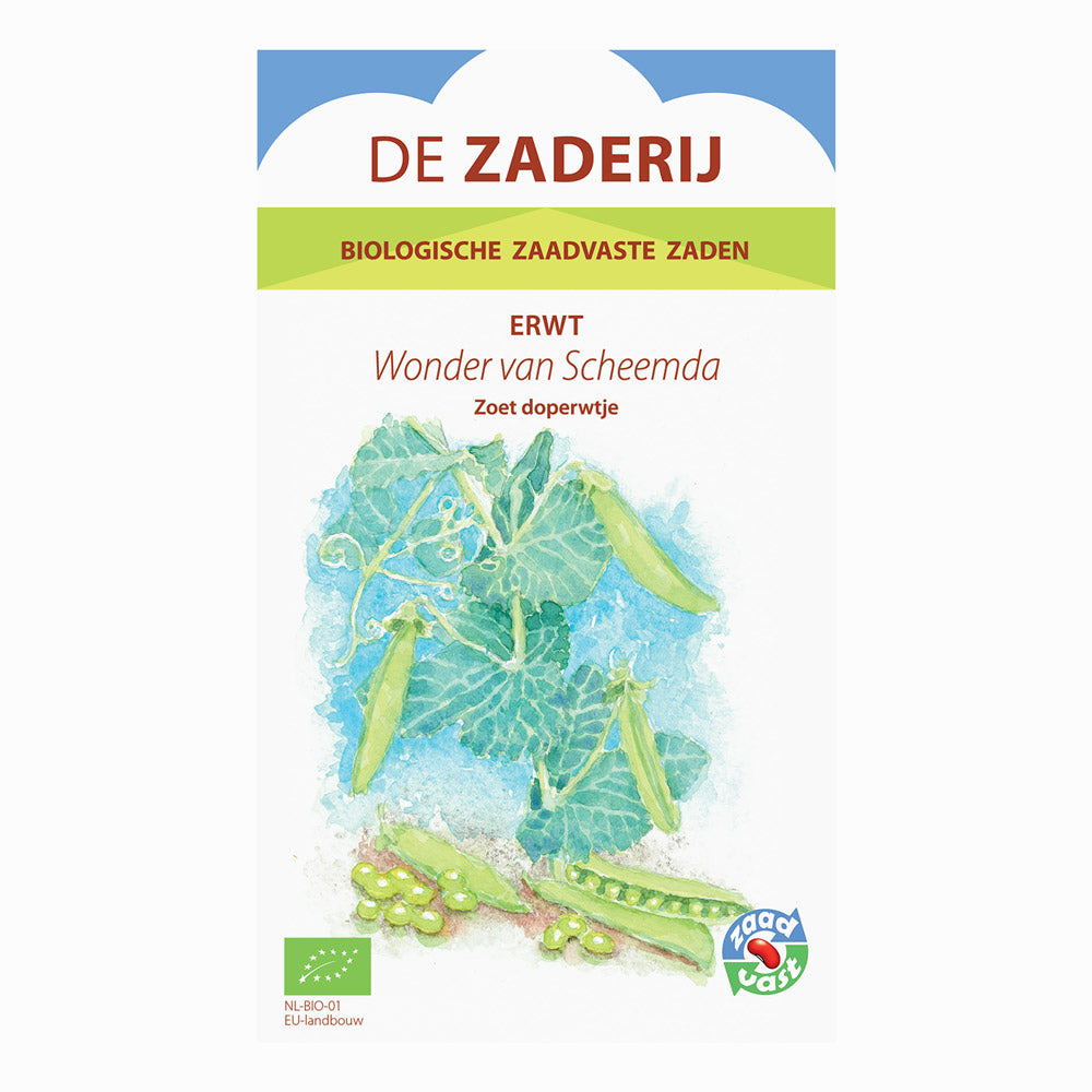 Het Wonder van Scheemda is een klassieke, biologische doperwt met een rijke geschiedenis en een uitstekende smaak. Dit Groningse ras werd begin vorige eeuw ontwikkeld door het zaadbedrijf Zwaan & De Wiljes in Scheemda en is sindsdien uitgegroeid tot een betrouwbaar en geliefd ras voor de moestuin. De planten worden zo’n zestig tot zeventig centimeter hoog en produceren goed gevulde, donkergroene peulen met zoete, malse erwten.