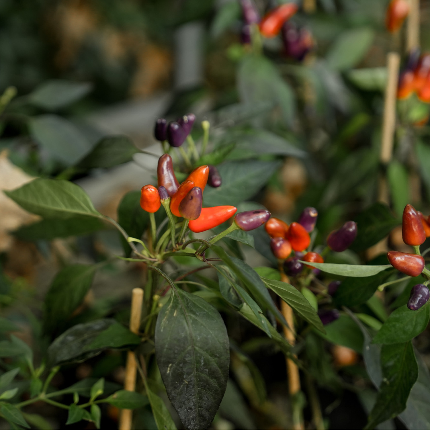 Betreed de wereld van kleur en pit met Paprika Lila Luzi, een decoratieve, heel kleine chilipeper die jouw tuin zal veranderen in een schilderachtig festijn. Met paarse bladeren en rijke vruchtdracht biedt deze peper een visueel spektakel terwijl de vruchten van paars naar geel, oranje en uiteindelijk rood rijpen. Bij uitstek geschikt als aantrekkelijke pot- of kuipplant, en ook ideaal voor buitenteelt. Met een scherptegraad van 7.