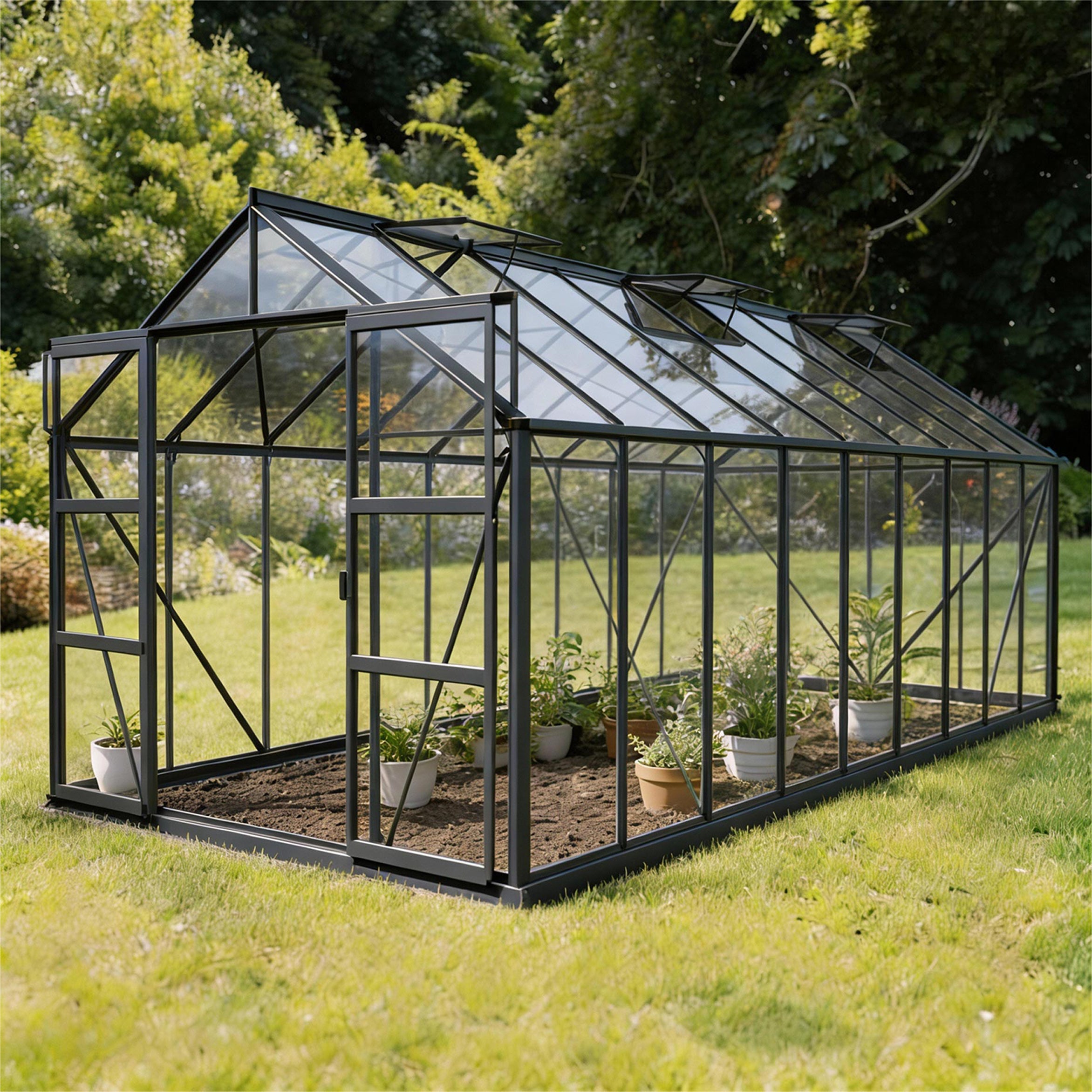 De Laurus 14,40m² is de grootste uitvoering binnen de serie en biedt volop ruimte voor ambitieuze tuinprojecten. Of het nu gaat om tomaten, druiven of overwinterende kuipplanten, deze kas biedt de ideale omstandigheden om het hele jaar door te kweken. De hoge wanden en het royale dak zorgen voor een licht en luchtig gevoel, zelfs bij volle beplanting.