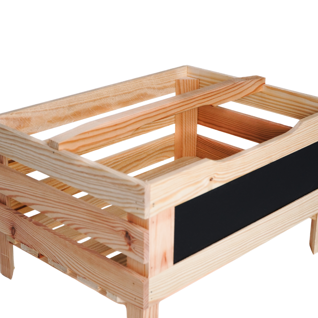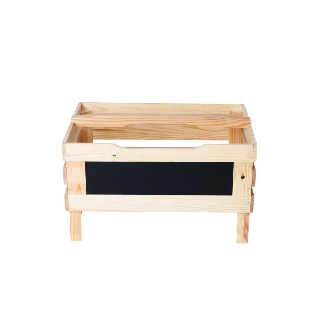 Deze stevige houten voorraadkrat van massief grenenhout is niet alleen functioneel, maar ook een sfeervolle toevoeging aan je keuken, schuur of voorraadkast. Dankzij het geïntegreerde krijtbordje vooraan label je in een handomdraai wat erin zit – van aardappels tot uien of winterpenen. De natuurlijke houtkleur en robuuste afwerking geven de krat een ambachtelijke uitstraling die perfect past in zowel landelijke als moderne interieurs.