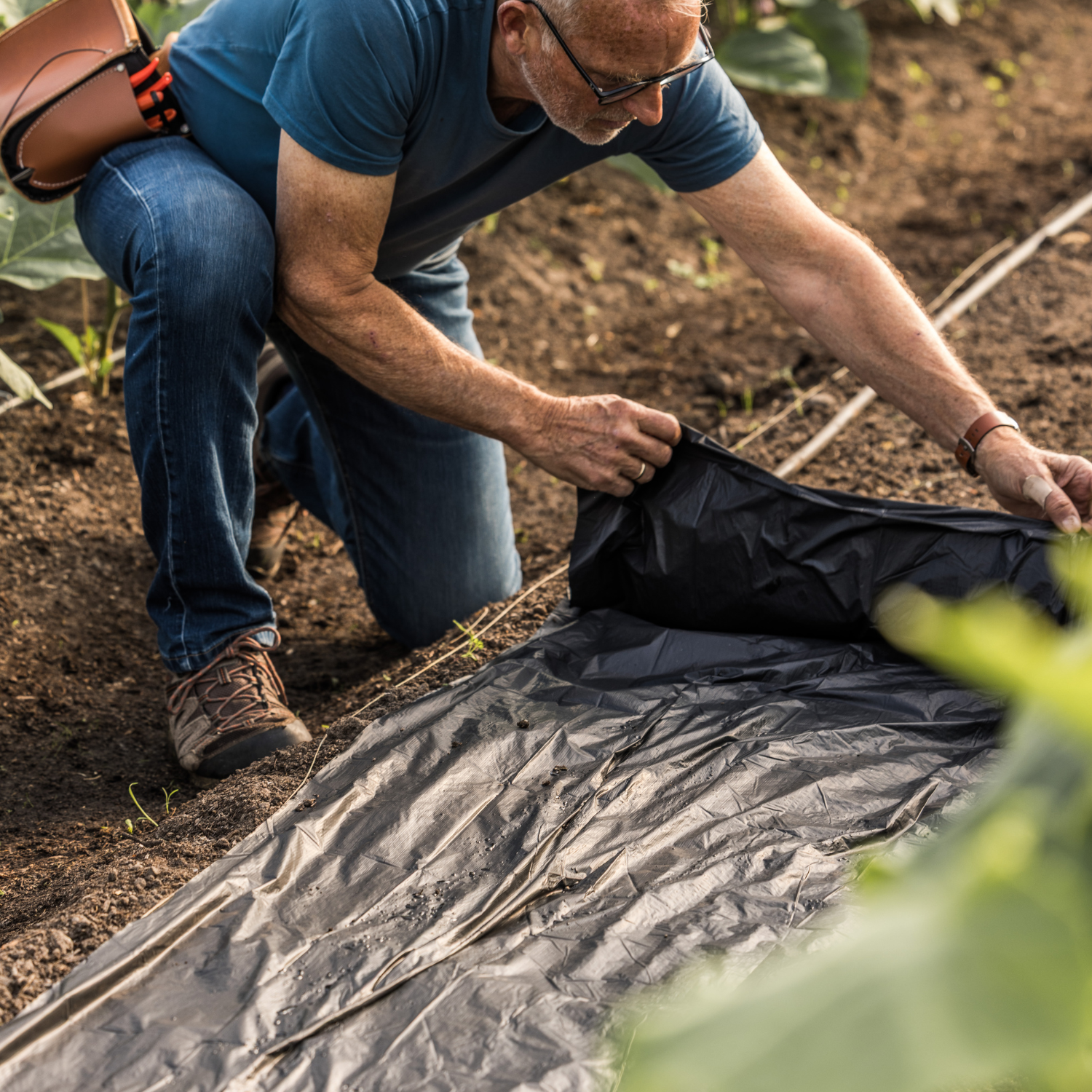 Je legt de folie eenvoudig over je grond en maakt op de gewenste plekken gaten om je zaailingen of plantjes erin te zetten. Door de folie goed te bevestigen met bijvoorbeeld grondpennen, blijft deze stevig liggen, ook bij wind of regen.