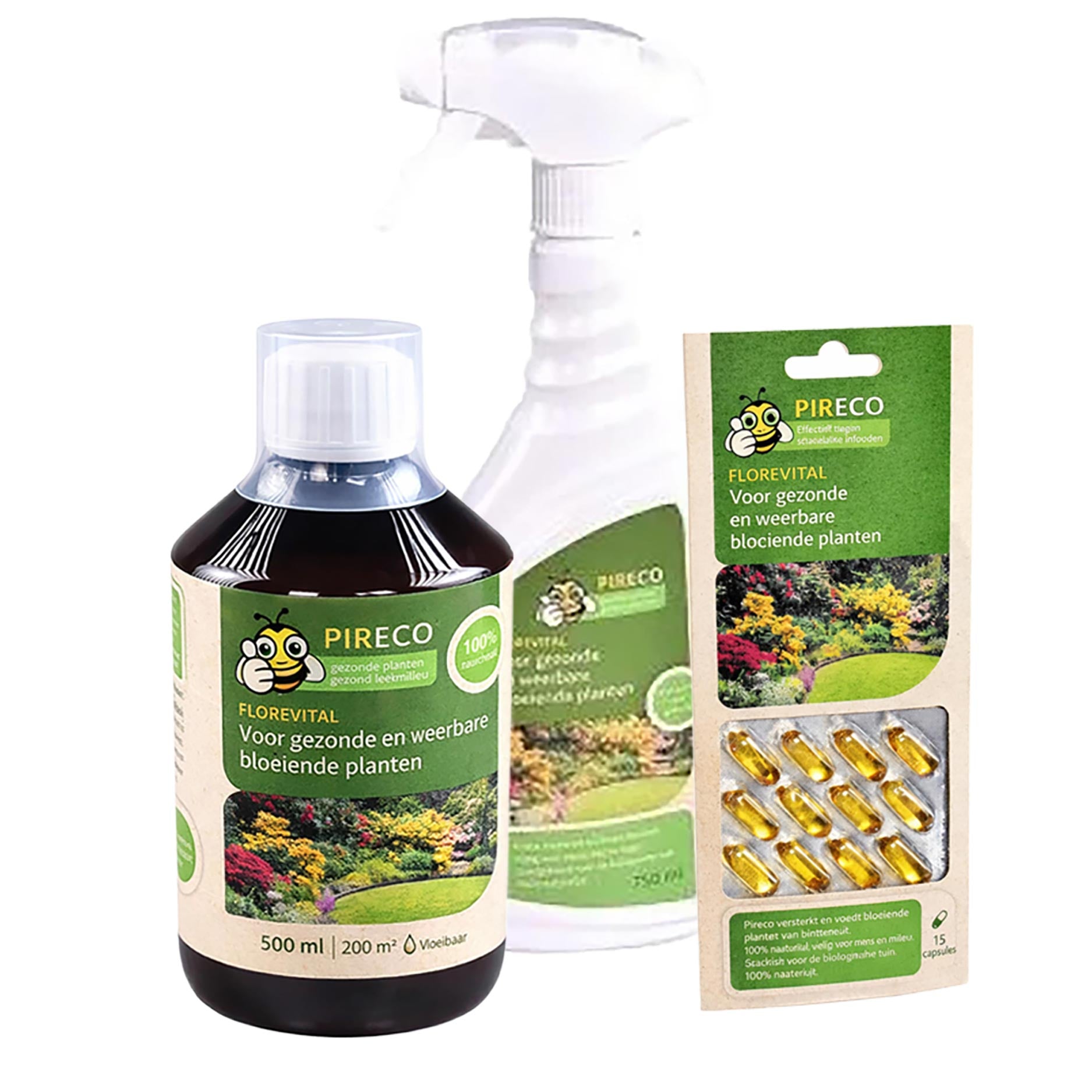 Pireco FloreVital is een natuurlijke plantenversterker die speciaal is ontwikkeld voor bloeiende planten, siergewassen en vaste planten in de tuin. Het product helpt planten vitaal te blijven en ondersteunt een rijke, langdurige bloei. FloreVital is ideaal voor gebruik in de siertuin, borders, potten en bakken op terras of balkon. Het is geschikt voor zowel de hobbytuinier die gezonde, kleurrijke bloemen wil, als de meer ervaren tuinier die gericht werkt aan sterke, weerbare planten en een volle bloei.
