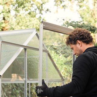 Let op: het monteren van een kas vereist technisch inzicht, zeker bij grotere modellen of bij het werken met glas. Bij wind of regen is montage af te raden. Een droge, windstille dag met minstens twee personen is ideaal.
