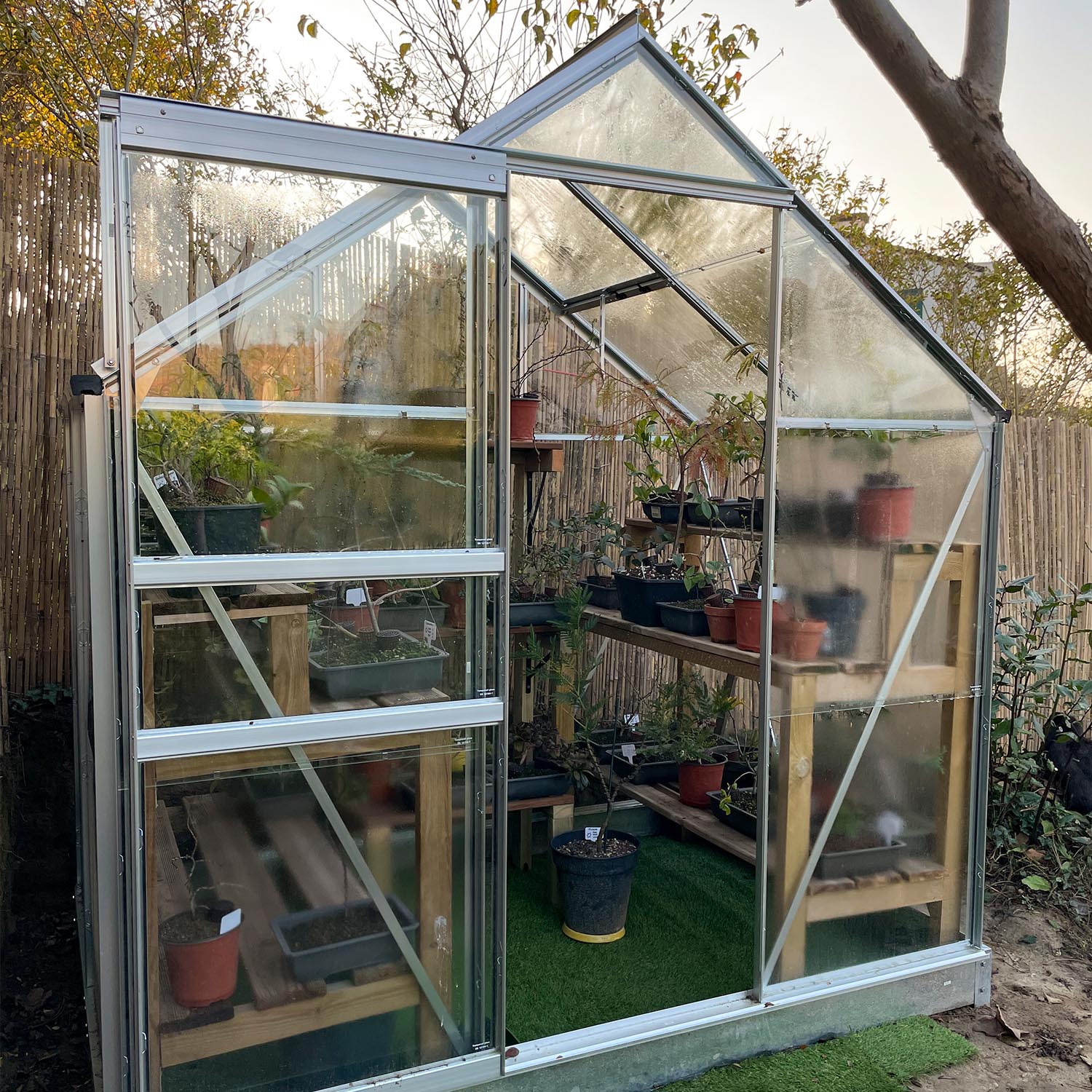 De aluminiumconstructie voelt degelijk en stabiel aan, met veiligheidsglas van 3mm dat veel licht doorlaat en eenvoudig schoon te houden is. De schuifdeur en het dakvenster zorgen voor natuurlijke ventilatie en een prettig binnenklimaat. Het funderingsframe en de hemelwaterafvoer zijn standaard inbegrepen, zodat de kas meteen gebruiksklaar is. Klein in formaat, maar groots in mogelijkheden.