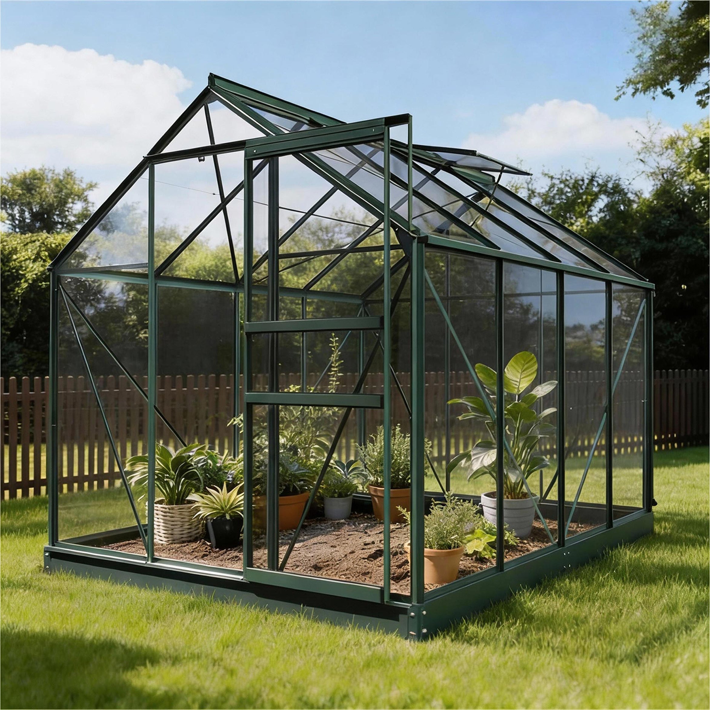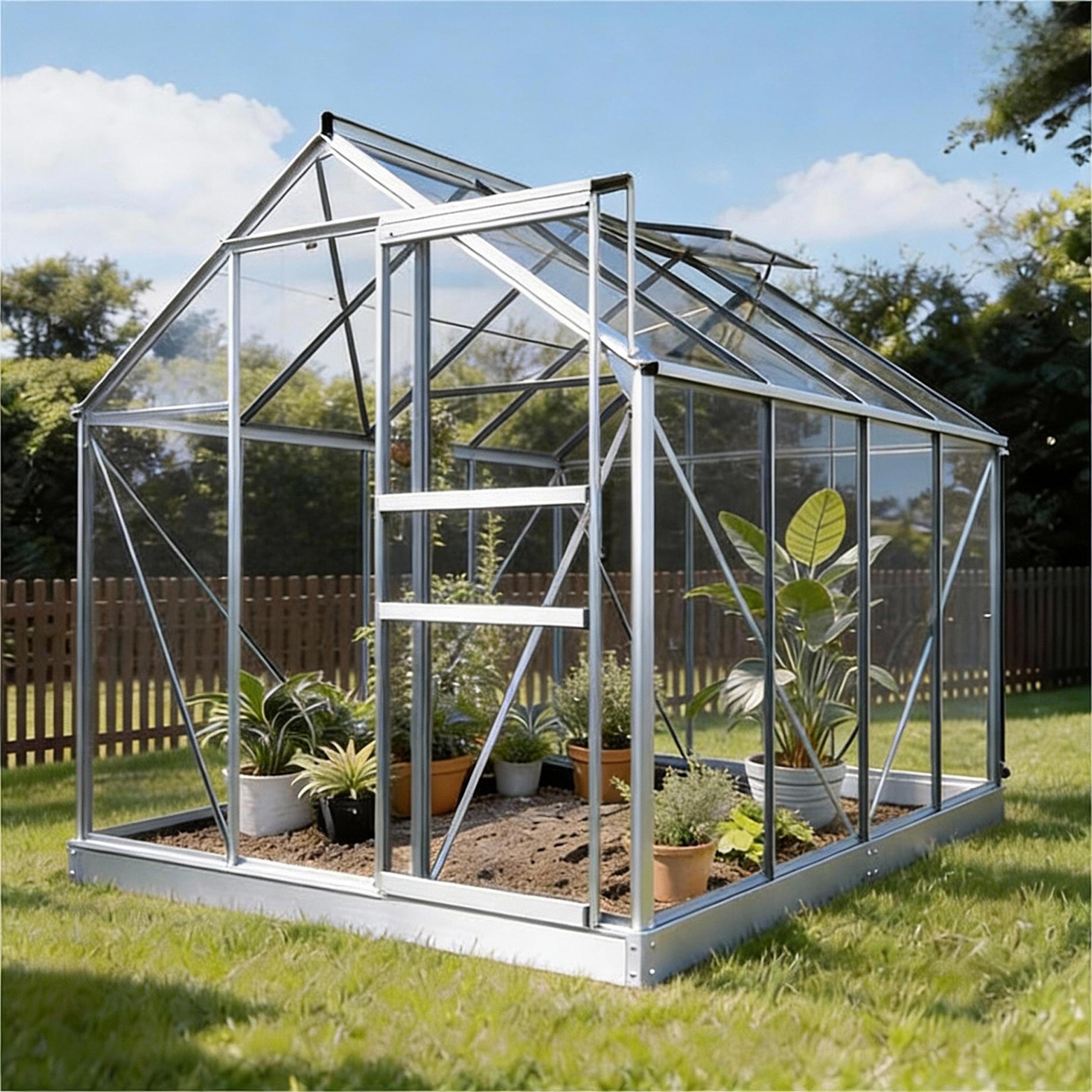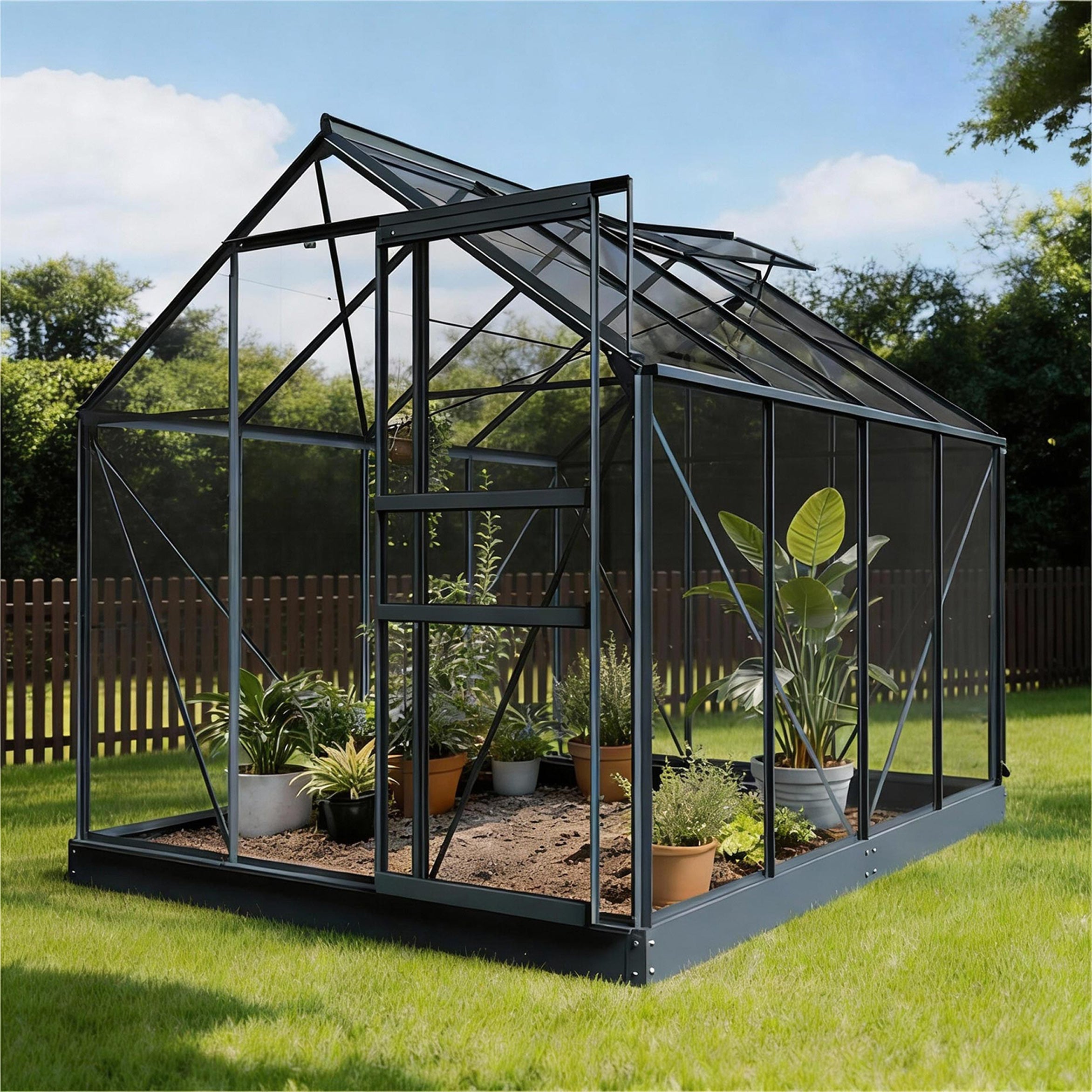 De aluminiumconstructie met 3mm veiligheidsglas voelt stevig en betrouwbaar aan, ook bij wind of regen. De schuifdeur loopt soepel en het dakvenster zorgt voor een prettig binnenklimaat. Dankzij het funderingsframe staat de kas stabiel op elke ondergrond, terwijl de dubbele hemelwaterafvoer regenwater keurig afvoert of opvangt voor hergebruik. Zo combineert de Allium gebruiksgemak met duurzaamheid en een rustige, verzorgde uitstraling in de tuin.