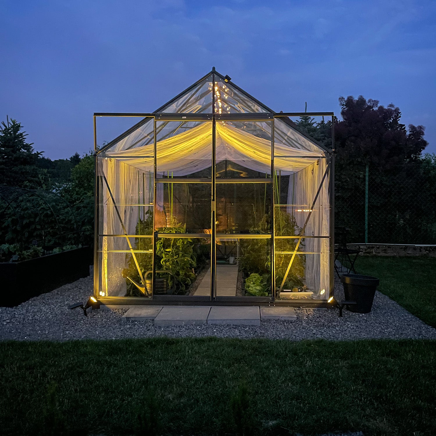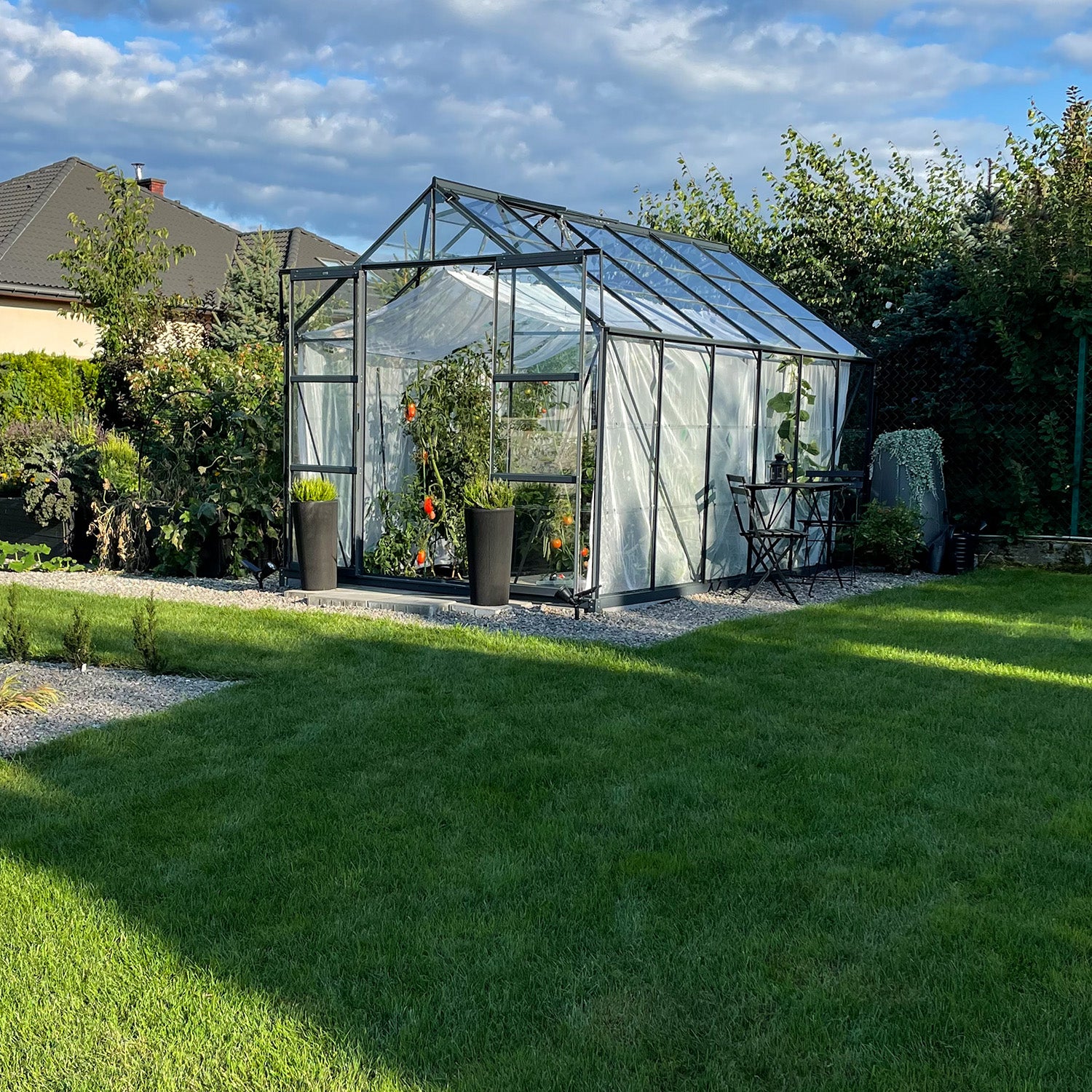 De Laurus 9,70m² biedt wat meer ademruimte voor wie intensief tuiniert. Deze kas is ideaal voor het combineren van meerdere teelten, of voor het plaatsen van een werktafel en wat grotere planten. De extra lengte geeft meer overzicht en maakt de indeling flexibel, zonder dat het geheel te groot aanvoelt.
