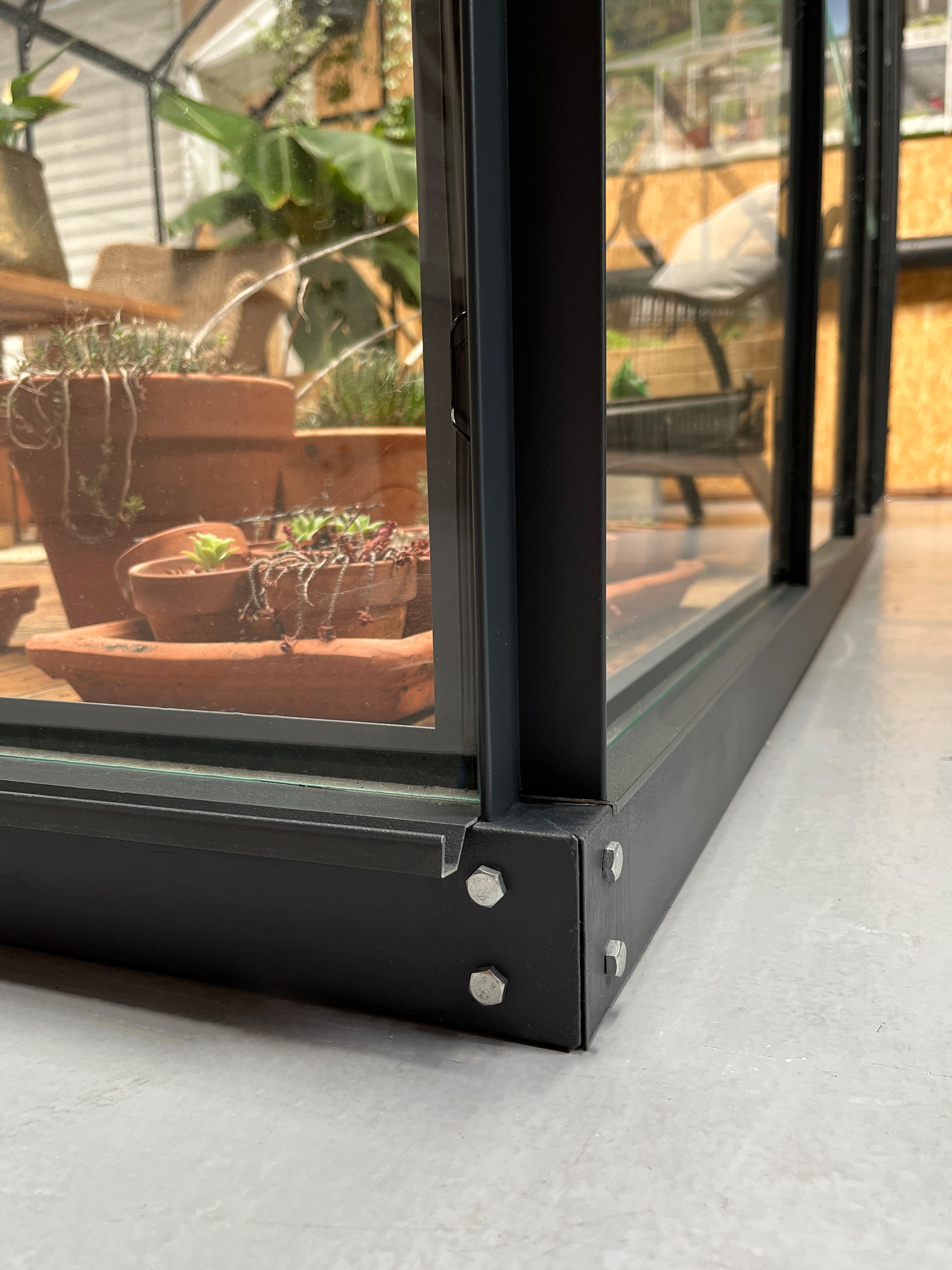 De aluminiumconstructie is licht, stevig en voorzien van veiligheidsglas dat helder licht doorlaat en goed bestand is tegen wind en regen. De kas is eenvoudig te monteren en standaard uitgerust met funderingsframe en hemelwaterafvoer. Een slimme, onderhoudsvriendelijke oplossing voor stads- en balkontuinen.