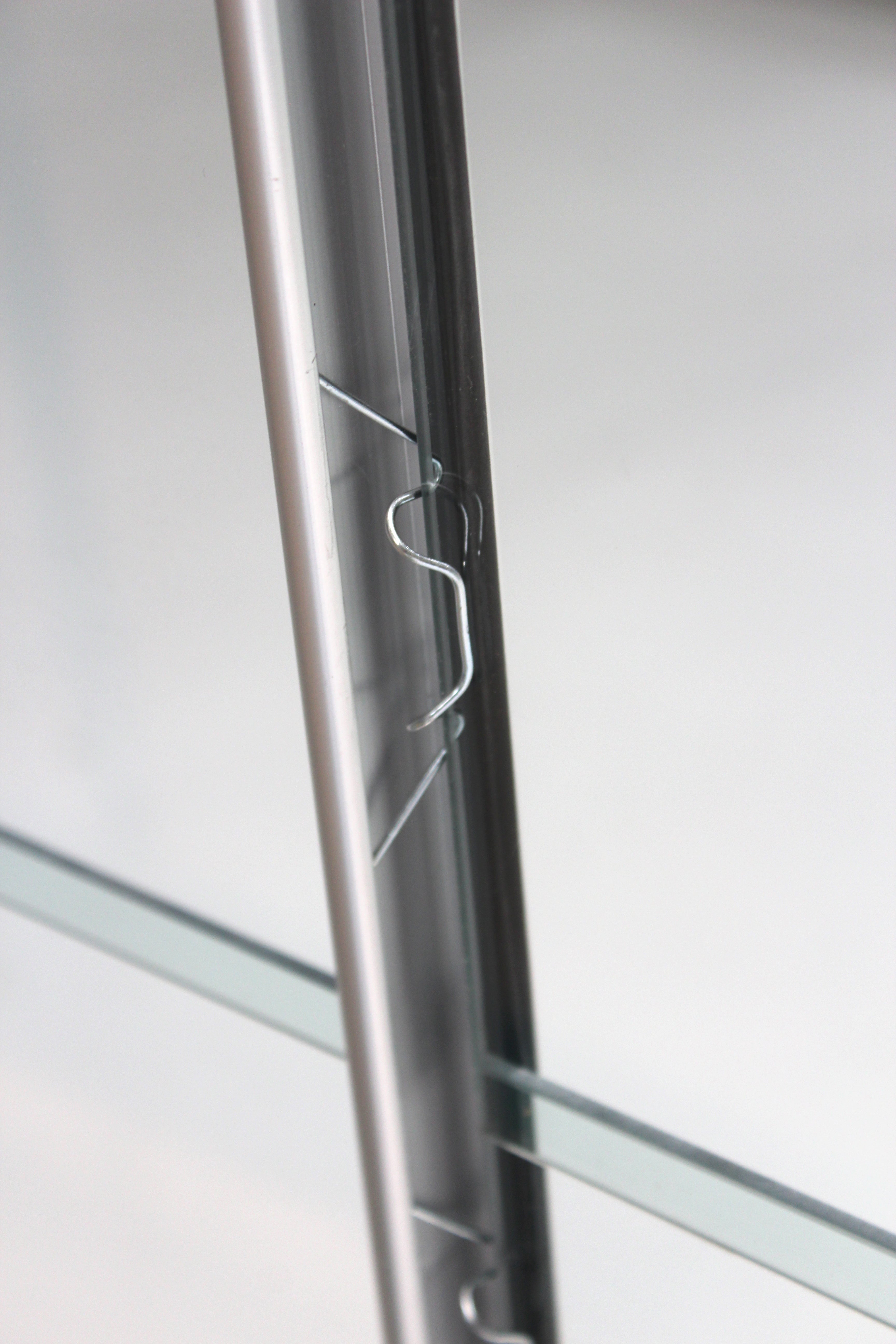 ⬜ De glaspanelen zijn niet de volledige hoogte, de vlakken bestaan uit meerder vierkante dakpansgewijs gestapelde glaspanelen