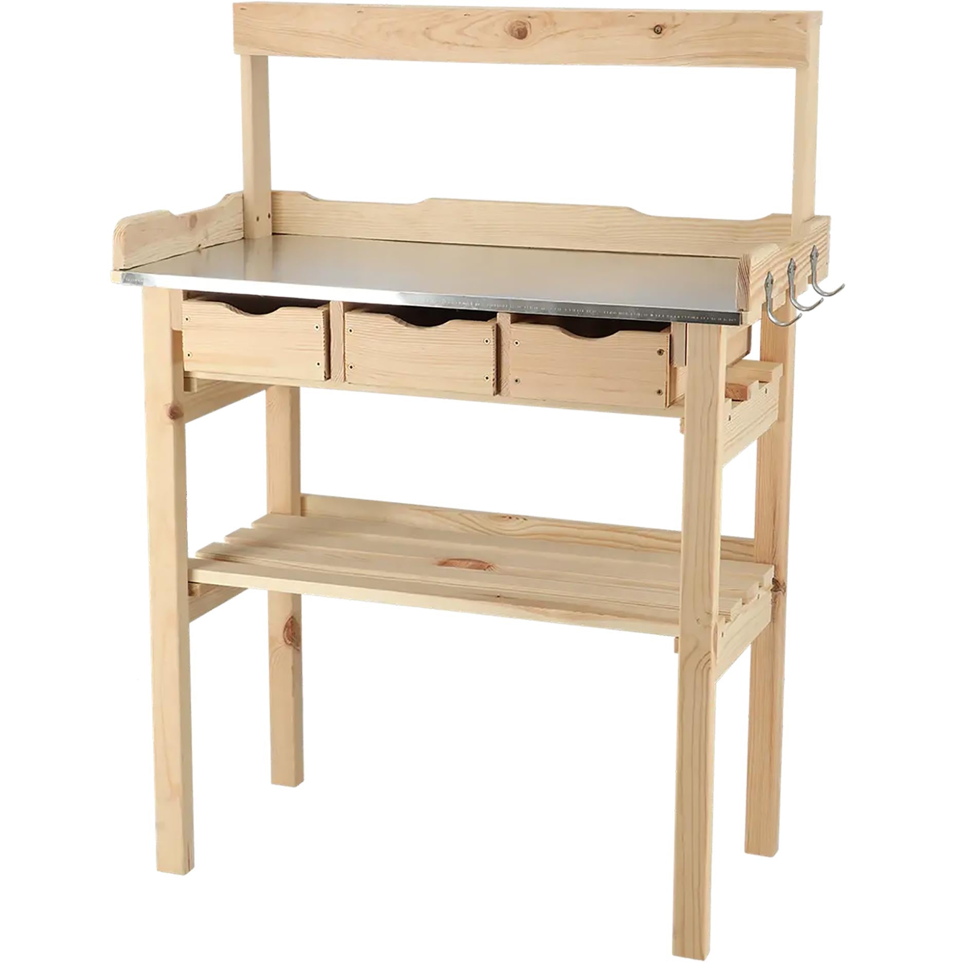 Je zet een rij jonge plantjes op het werkblad en plaatst je potgrond klaar. In het opzetstuk staan je potjes en labels overzichtelijk geordend, terwijl je in de lades snel je handschepje en touw pakt. Terwijl je werkt, blijft alles binnen handbereik en groeit er langzaam een georganiseerde werkplek om je heen. Aan het einde van je sessie schuif je alles terug op zijn plek en blijft er een rustige, overzichtelijke tafel achter die klaarstaat voor de volgende ronde in de tuin.